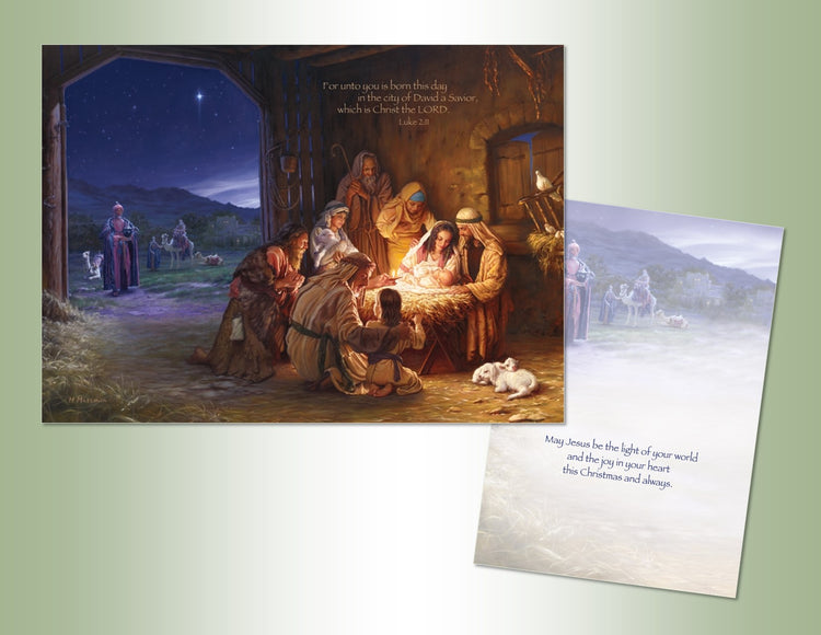 Full color inside design and message with bible verse- Luke 2:11. "For unto you is born this day in the city of David a Savior, which is Christ the LORD."