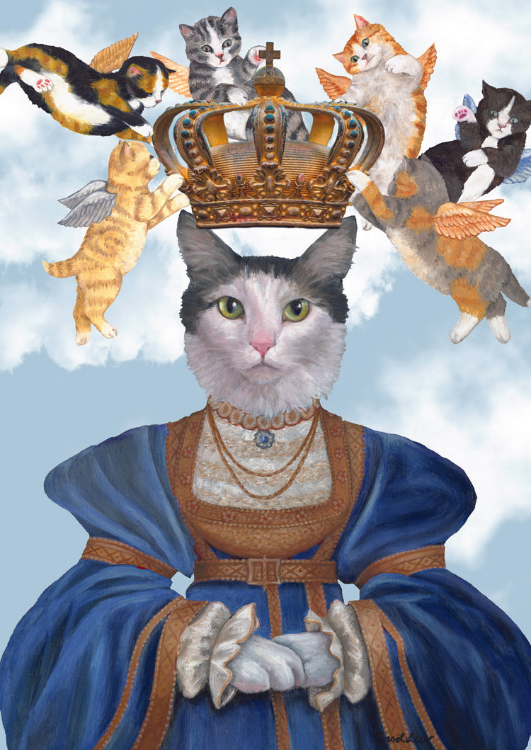 Amazing portraits of cats for all the cat lovers! These clever works of art are by artist Carol Lew and feature different feline breeds in famous Renaissance scenes. Cards are 6 X 8 inches and blank inside for plenty of room to write any personalized message for any occasion. This pack include 8 designs, 2 of each design, for 16 cards total. Comes with 16 white envelopes.