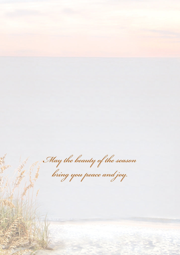VELVETY SOFT-TOUCH FEEL! Full color inside design with a warm inside message that reads: May the beauty of the season bring you peace and joy.