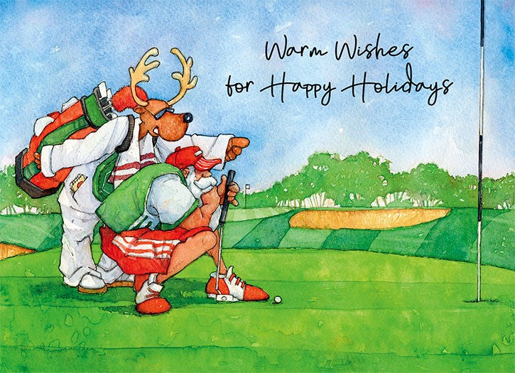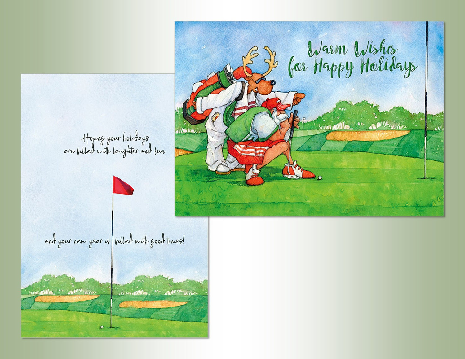 7.75" x 5.5" boxed Christmas cards with full color inside design. Larger size. Soft touch finish. 16 cards and 16 envelopes per box.  Made in the USA.