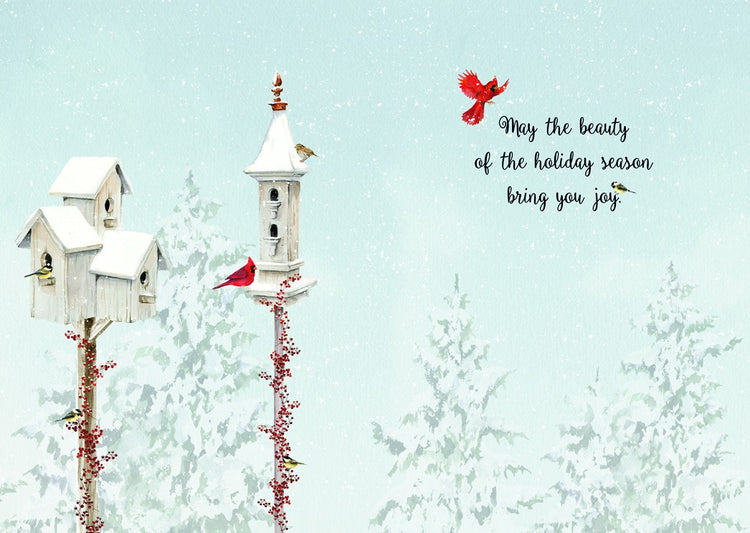 7.75" x 5.5" card with glitter embellishment and full color inside design.  14 cards and 14 envelopes per box.