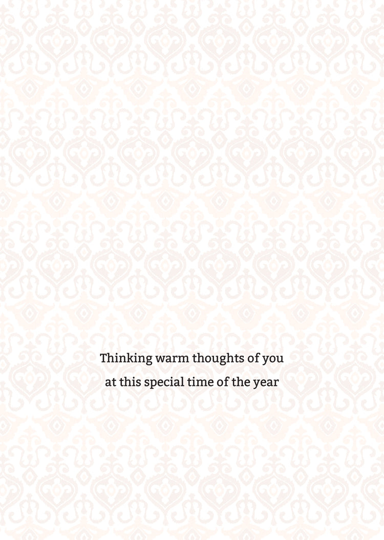 7.75" x 5.5" card with glitter embellishment and full color inside design.  14 cards and 14 envelopes per box.