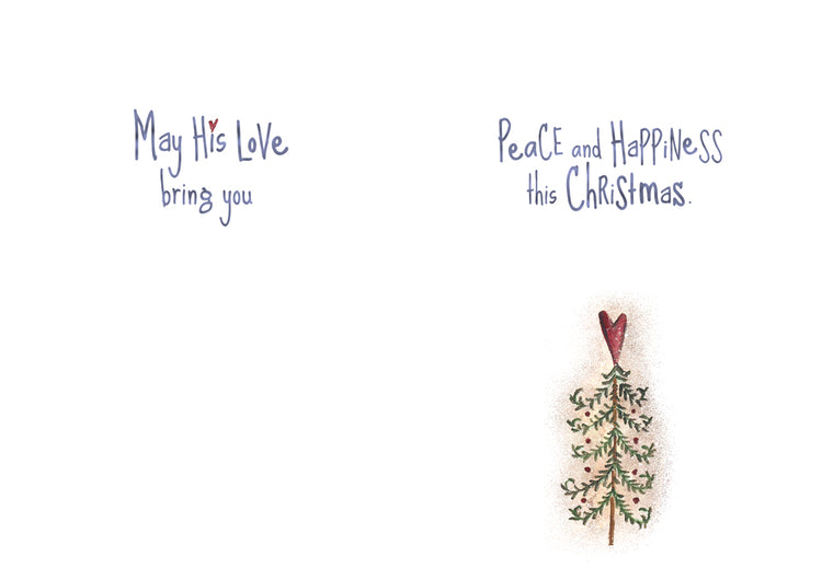 7" x 5" boxed Christmas cards with full color inside design.  18 cards and 18 envelopes per box.  Made in the USA.