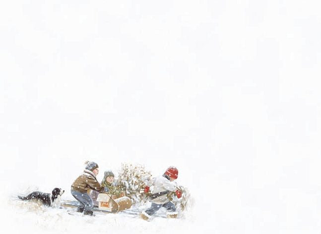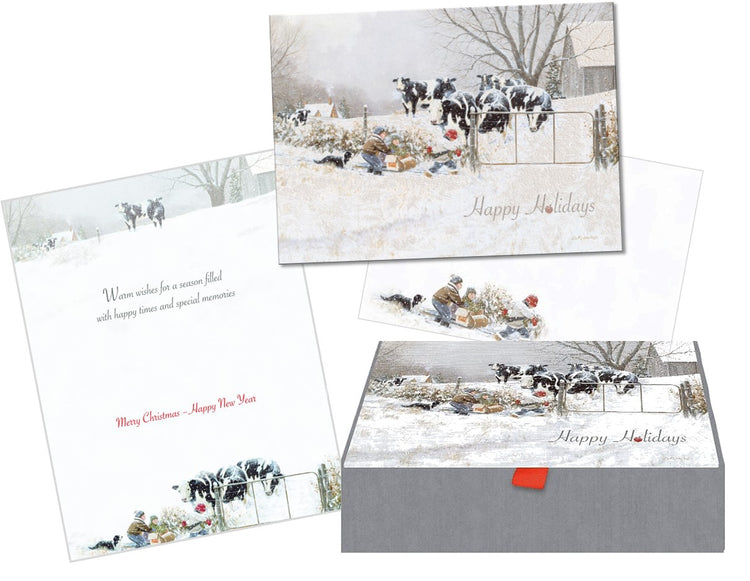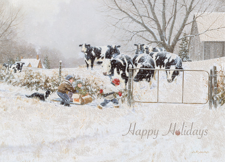 Cows and Kids Sledding - Glitter Keepsake #87152
