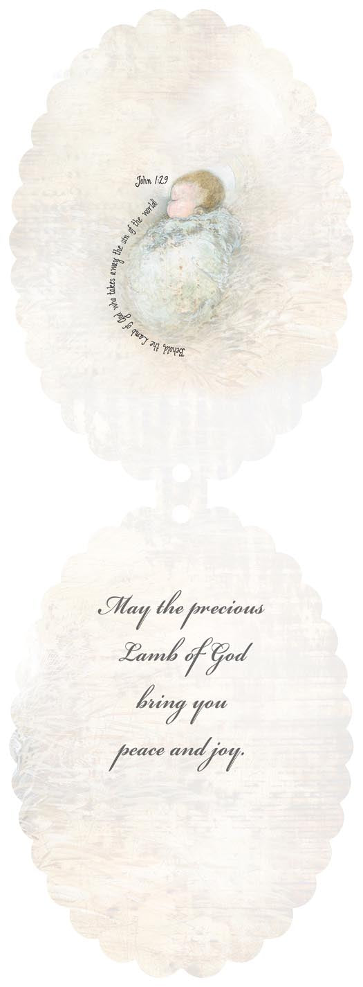 7" x 5" die-cut card with glitter embellishment on both front and back, full color inside and ribbon tie.  12 cards and 12 envelopes per box.