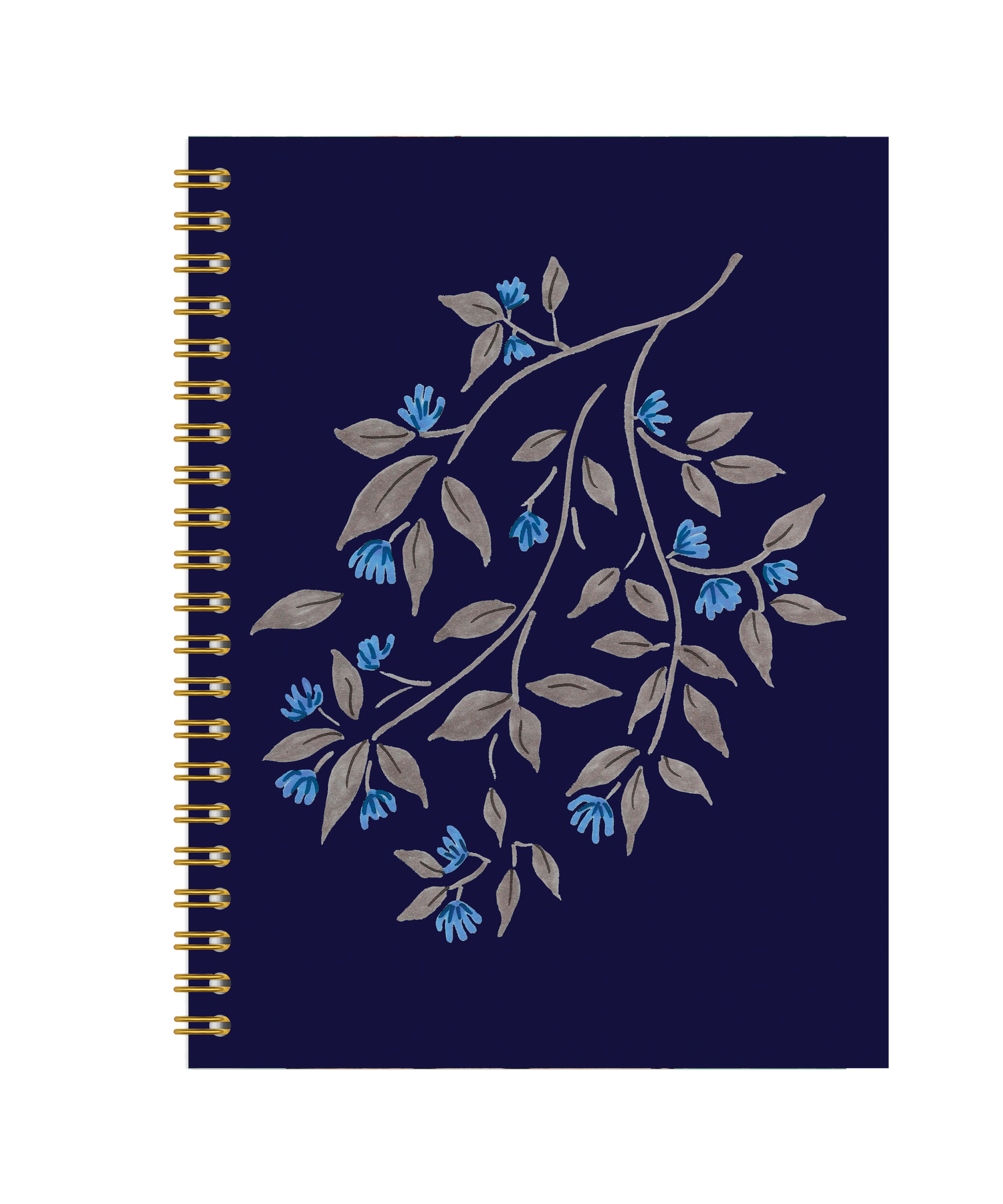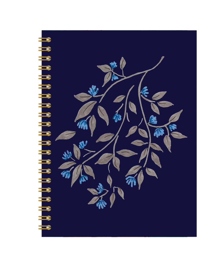 Step into a tranquil twilight garden with this beautifully crafted sketchbook featuring soft gray leaves and delicate blue flowers set against a deep navy background. Designed by artist Samia Farooq, the artwork evokes quiet elegance—a place where calm and creativity intertwine.
